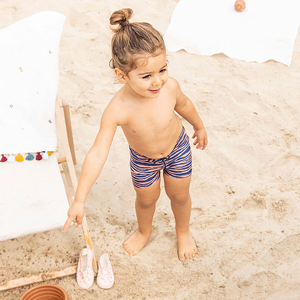 De zebra print in blauw en oranje zorgt voor een stoere look die perfect past bij energieke peuters. Combineer de zwemboxer met een UV shirt of zonnehoedje voor een complete en praktische zomeroutfit. Zo is jouw peuter klaar voor een zomer vol avontuur, comfort en stijl.