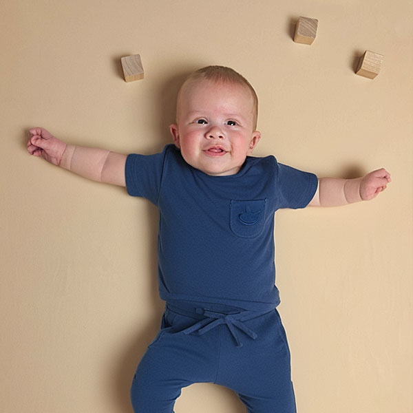 Frogs and Dogs baby shirtje korte mouw Happy with You Smile Twilight Blue – smiley blauw