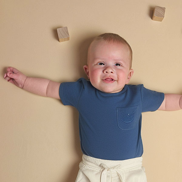 Draag het met een korte broekje op warme dagen of combineer het met een stoere jeans of legging voor een speelse, alledaagse look. De combinatie van zachte tinten en een eenvoudig ontwerp maakt dit shirtje tijdloos én modern tegelijk. Of het nu gaat om een dagje thuis, een wandeling of een familiebezoek, je baby ziet er altijd vrolijk en verzorgd uit.