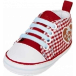 Deze schattige babyschoenen hebben een sportieve look. Handig lipje aan de achterkant voor het eenvoudig aantrekken van de schoentjes. De antislipnoppen aan de onderkant voorkomen uitglijders bij nat weer. Deze stoere gympjes zijn voorzien van een lief hartje aan de zijkant van het schoentje. Op het hartje staat het woordje ‘Love’.