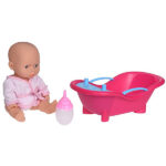 Een leuke en schattige pop met een badjas in de kleur roze. De pop wordt met diverse accessoires geleverd waardoor uren speelplezier gegarandeerd is. Met deze pop kan je ook heerlijk knuffelen. Met het bijgeleverde badje kan je veel plezier beleven.