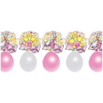 De set bestaat uit een roze-witte slinger van 150 cm en acht bijpassende ballonnen. De ballonnen zijn eenvoudig aan de slinger te bevestigen, zodat je binnen no-time een feestelijke decoratie hebt voor aan de muur, kast of deur.
