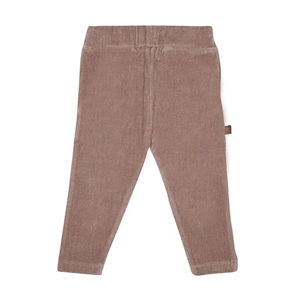 Dit leuke corduroy broekje in de kleur bruin is gemaakt van velvet ribstof komt uit de Smart Club collectie van Frogs and Dogs. Het broekje is effen van kleur en heeft aan de voorzijde 2 steekzakjes. Bij de zakjes zitten ook 2 ‘knoopjes’ op de rand. De tailleband is elastisch met een koord. De pijpjes zijn voor zien van een boordje. Logo van de lijn is geborduurd op het linkerpijpje.