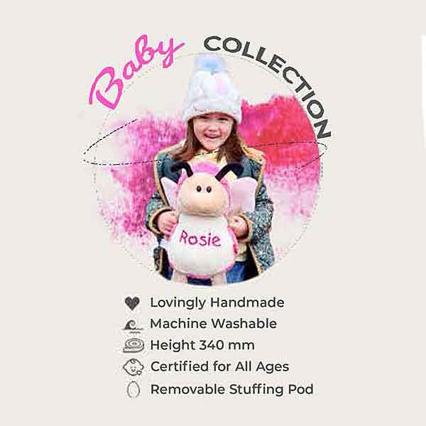Handwas, het beste is om de vulling van het lijfje en het hoofdje te verwijderen tijdens het wassen. Zo blijft de knuffel heel lang in vorm.
