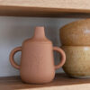 De Aiko Silicone Cup in de kleur caramel is een warme, karamelkleurige drinkbeker die perfect is voor kleine handjes. De afneembare tuitdeksel helpt morsen te beperken als de beker per ongeluk valt. Dankzij de twee stevige handgrepen kan je kindje de beker makkelijk vasthouden en zelfstandig leren drinken. Op de voorzijde staat een lieve illustratie van een koala en giraffe die elk drinkmoment extra leuk maakt. Ideaal voor thuis en onderweg. De siliconen bekers zijn geschikt voor levensmiddelen, vaatwasser- en magnetronbestendig.