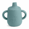 De Aiko Silicone Cup Lead Blue in de kleur lood is een stijlvolle loodblauwe beker die speciaal is ontworpen voor kleine handjes. De afneembare tuitdeksel helpt morsen te beperken als de beker uit de handjes valt. Dankzij de twee stevige handgrepen kan je kindje de beker makkelijk vasthouden en zelfstandig leren drinken. Op de voorzijde staat een lieve illustratie van een koala en giraffe die elk drinkmoment vrolijk maken. Een fijne beker voor elke dag. De siliconen bekers zijn geschikt voor levensmiddelen, vaatwasser- en magnetronbestendig.