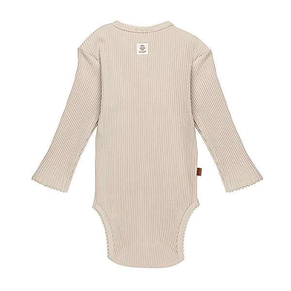 Frogs and Dogs babyromper lange mouw Rib Follow Your Heart Silver Gray – effen beige
