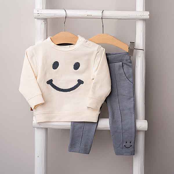 De effen grijze kleur maakt de broek veelzijdig en makkelijk te combineren met een t-shirt, trui of vest uit de Smile Club collectie. Het geborduurde smiley detail op het pijpje zorgt voor een vrolijke knipoog die kinderen leuk vinden en ouders waarderen. De zakjes aan de voor- en achterkant geven de broek een stoere look en maken het ontwerp helemaal af.