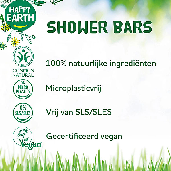 De Shower Bar Jasmine Ho Wood van Happy Earth bevat voedende ingrediënten zoals sheaboter, amandelolie, arganolie en avocado olie. Deze oliën ondersteunen de huid tijdens het douchen en helpen de natuurlijke balans te behouden. Sheaboter verzacht en voedt, terwijl amandelolie en avocado olie zorgen voor een soepele huid zonder vettig gevoel. Arganolie helpt de huid te herstellen en beschermt tegen uitdroging. Dit maakt de bar zeer geschikt voor mensen met een droge of gevoelige huid die behoefte hebben aan een zachte reiniging.