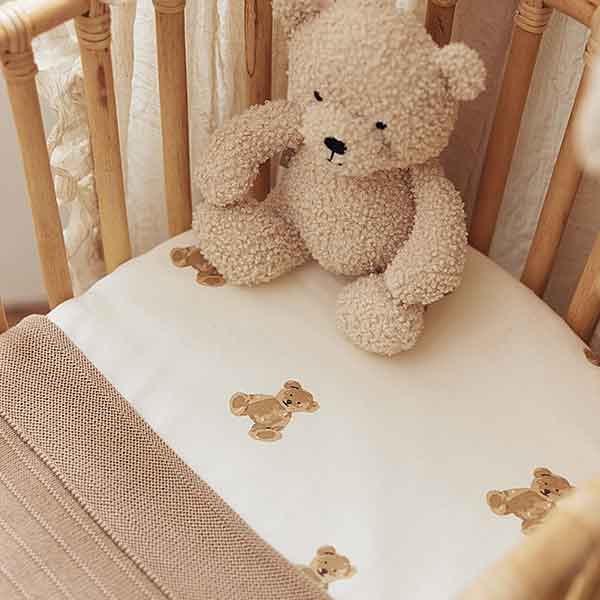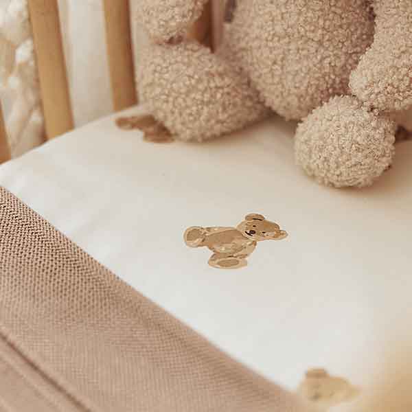 Jollein hoeslaken Teddy Bear 70/75 x 140/150 cm Ivory – berenprint ivoor
