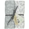 Handige hydrofiele swaddle of multidoek uit de collectie Organic Botanic van Briljant Baby. Dit setje bestaat uit 2 stuks: 1x wit met grijze opdruk en 1x grijs met witte opdruk.