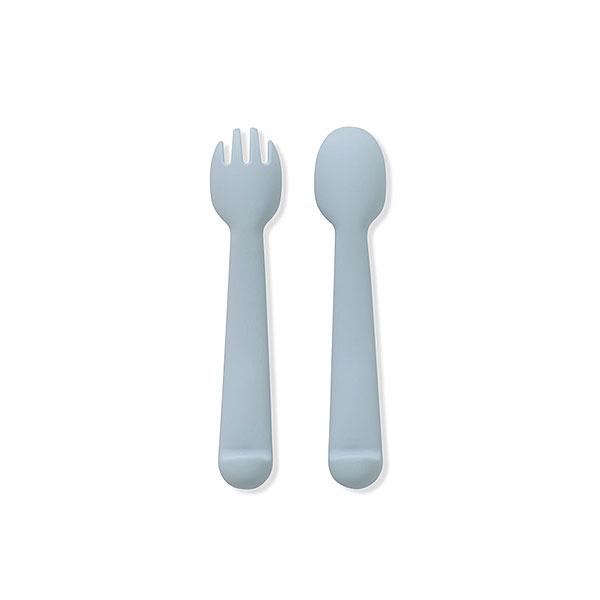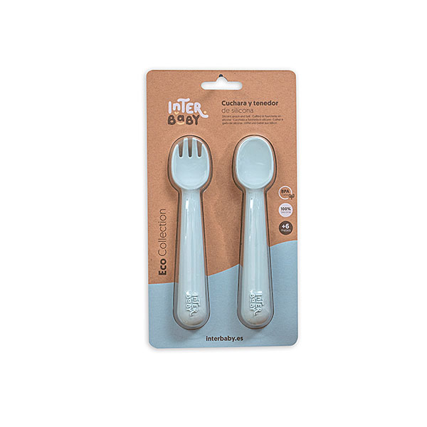Interbaby siliconen lepel en vork Blue Gray – blauwgrijs 14 cm