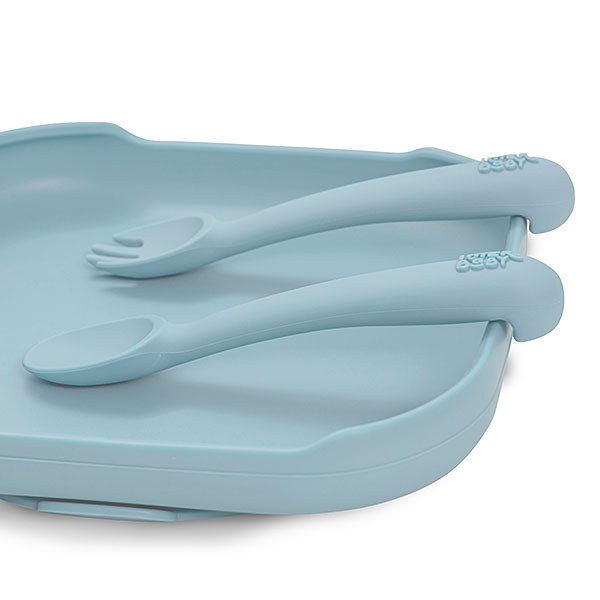 De blauw grijze tint geeft het bestek een rustige en moderne uitstraling die perfect aansluit bij elke baby uitzet. Dankzij de compacte afmetingen past het setje makkelijk in een luiertas, broodtrommel of rugzak. Of je nu thuis eet, op visite bent of onderweg een snackmoment hebt, dit bestek komt altijd van pas. Het materiaal verkleurt niet, is geurloos en neemt geen smaken op waardoor het hygiënisch blijft. De zachte vormen en het lichte gewicht maken het bovendien geschikt voor zowel baby’s als peuters. Een onmisbaar item voor elke ouder die gemak en stijl graag combineert.