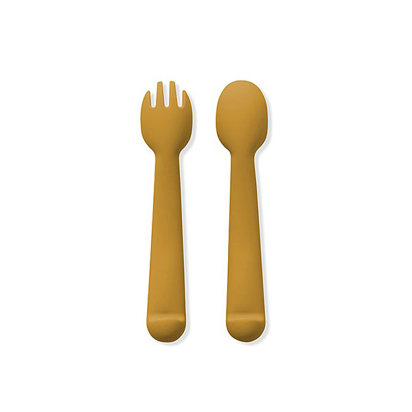 Interbaby siliconen lepel en vork Earth Ocher – okergeel 14 cm