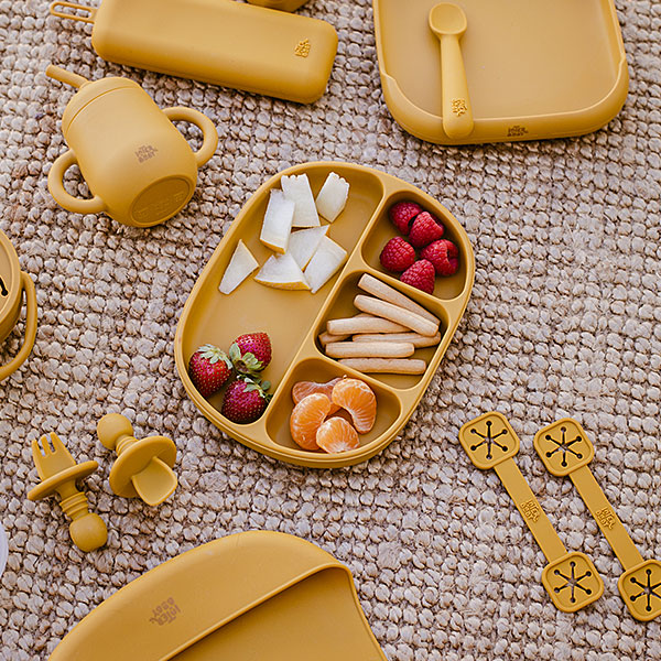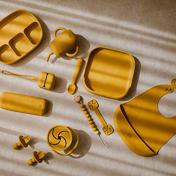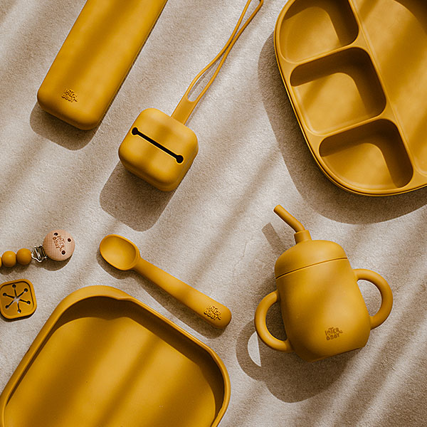 De oker gele kleur geeft dit bestek een warme en uitnodigende uitstraling die bij veel servies en slabbetjes past. Het compacte formaat maakt het makkelijk om mee te nemen naar de opvang, in de luiertas of bij een dagje uit. Siliconen neemt geen smaak of geur op en verkleurt niet, waardoor het bestek hygiënisch en duurzaam blijft. Door het lichte gewicht en de zachte rondingen kunnen baby’s en peuters het makkelijk vasthouden en gebruiken. Een praktische en stijlvolle keuze voor ouders die het eetmoment graag zo prettig mogelijk maken.