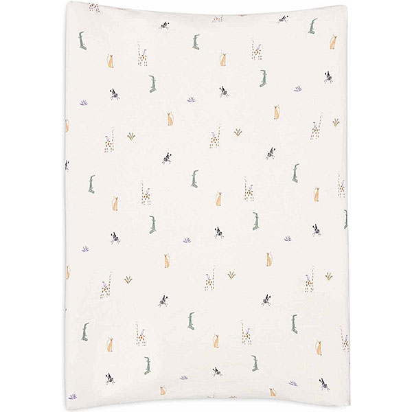 De jungleprint met zebra’s, cheetahs en girafjes geeft deze aankleedkussenhoes een speelse en warme uitstraling. De zachte kleuren zorgen ervoor dat de hoes makkelijk te combineren is met andere items in de babykamer. Dit maakt het een mooie toevoeging aan zowel een neutrale als een vrolijke inrichting.