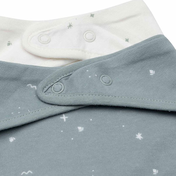 Bandana slab baby Twinkling sea green is een praktische en stijlvolle oplossing om kleding droog te houden. Deze zachte bandana slabben vangen kwijl en kleine knoeimomenten moeiteloos op. Dankzij de rustige kleuren en subtiele print zijn ze geschikt voor zowel jongens als meisjes. Ideaal voor baby’s en jonge kindjes die tandjes krijgen of veel kwijlen. De set van 2 zorgt ervoor dat je altijd een schone slab bij de hand hebt. Zo blijft je kleintje comfortabel én verzorgd.