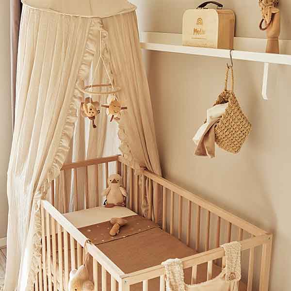 Door de combinatie van zachte teddy materialen en neutrale kleuren brengt deze babymobiel direct sfeer in de babykamer. Het eenvoudige ontwerp maakt het een ideaal accessoire voor boven de box, maar ook prachtig boven een wiegje of commode. De rustige bewegingen en vriendelijke kleuren helpen je kindje ontspannen en creëren een fijne en veilige speelomgeving. Door de hoogwaardige materialen blijft de mobiel lang mooi en gaat hij met gemak meerdere kindjes mee. Omdat de mobielarm los verkrijgbaar is, kun je kiezen voor een stijl die perfect aansluit bij jouw interieur. Dit maakt de mobiel extra veelzijdig en geschikt voor diverse ruimtes. Of het nu gaat om een speelse toevoeging tijdens het wakker worden, of een rustige afsluiting van de dag, deze babymobiel is een warme, stijlvolle en functionele keuze.