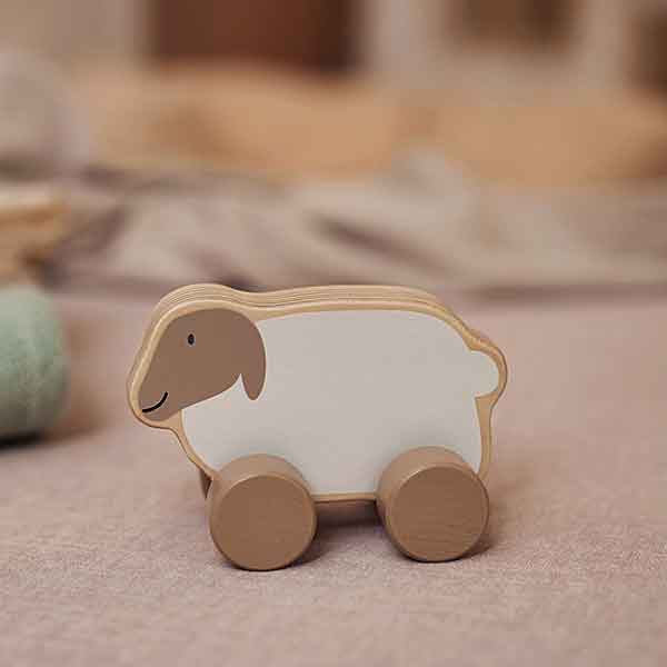 Jollein houten speelgoedauto Fram Lamb – lammetje wit 10 cm
