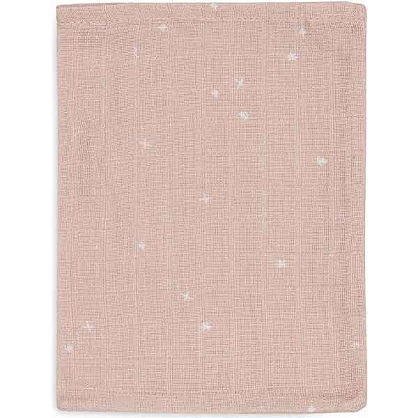 Jollein hydrofiele washandjes Twinkling Wild Rose 3 stuks – sterrenprint roze/wit