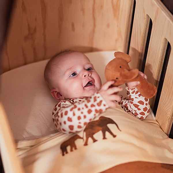 De neutrale crèmekleur maakt dit laken eenvoudig te combineren met verschillende dekentjes en accessoires. Op de foto zie je hoe het laken samen met een dekentje een harmonieus geheel vormt. Het Savannah thema sluit goed aan bij natuurlijke tinten en zachte materialen, waardoor je eenvoudig een warme en rustige styling creëert in het ledikant.