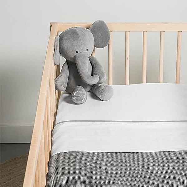 Het grijze vlak op de productfoto is een dekentje en dient als voorbeeldcombinatie. Zo krijg je direct inspiratie voor het opmaken van het ledikant. Door meerdere producten uit de velvet collectie te combineren creëer je eenheid en rust in de babykamer.