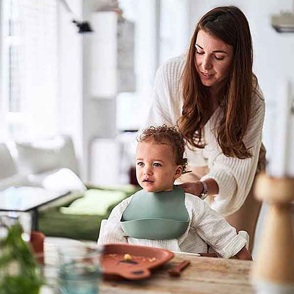Met deze flexibele siliconen slab in de rustige kleur ash green kan jouw kindje onbezorgd oefenen met zelfstandig eten. Van de eerste hapjes tot enthousiaste knoeimomenten met yoghurt, pap of fruit: deze slab vangt alles netjes op. Het zachte siliconen materiaal zit comfortabel om de hals en voorkomt dat eten en drinken op de kleding terechtkomen. Zo blijft eten leuk en ontspannen, voor je kindje én voor jou.