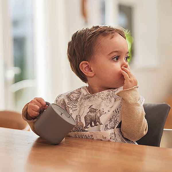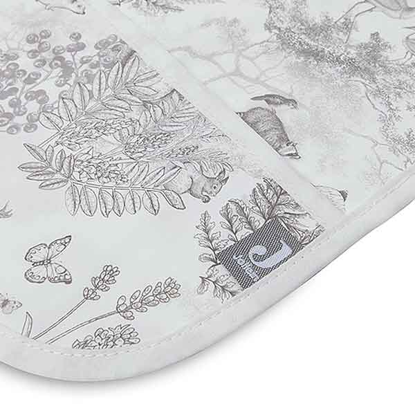 Het Forest Animals ontwerp uit de Pimpelmees samenwerking met Jollein is herkenbaar door de gedetailleerde tekeningen van bosdieren. De rustige kleuren zorgen ervoor dat de slab mooi past bij verschillende outfits. Dit maakt de slab niet alleen functioneel, maar ook leuk om te zien tijdens het eten.