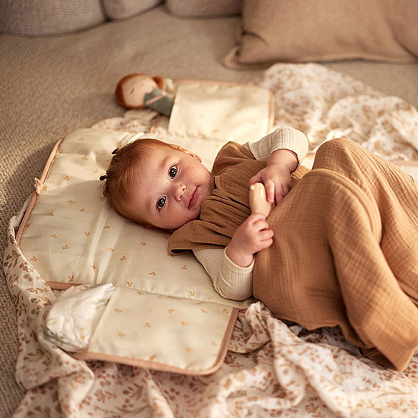 De handige opbergvakken zorgen ervoor dat je alles overzichtelijk kunt meenemen. Luiers, doekjes en andere verzorgingsproducten blijven netjes op hun plek. De sluiting met strikje maakt het matje eenvoudig in gebruik en zorgt ervoor dat alles netjes bij elkaar blijft. Een fijne combinatie van comfort, stijl en functionaliteit voor elke ouder.