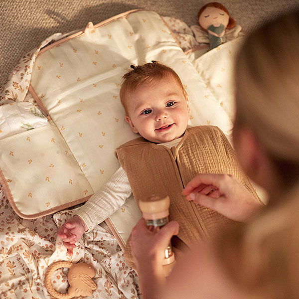 De binnenkant is afneembaar en eenvoudig schoon te maken, waardoor het matje altijd fris blijft. Dankzij het lichte gewicht en het compacte formaat neem je het gemakkelijk mee in je tas. Zo heb je altijd een praktische oplossing bij de hand, of je nu op bezoek gaat of een dagje op pad bent.