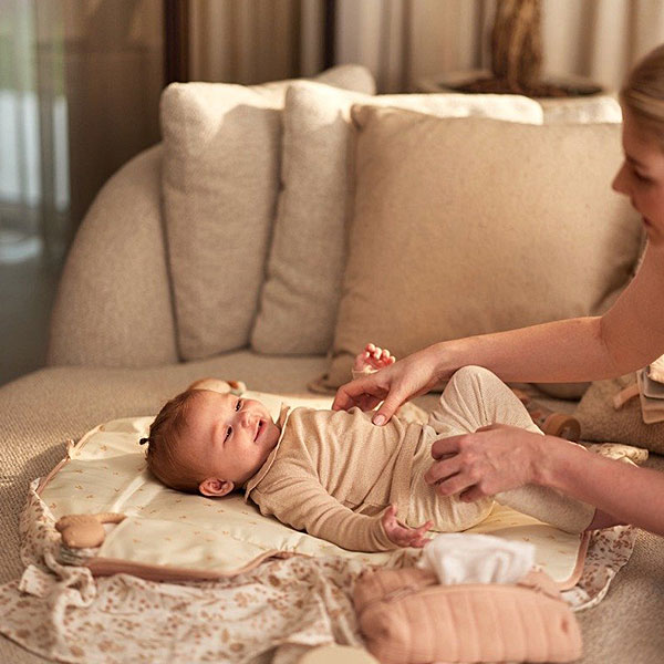 De handige opbergvakken zorgen ervoor dat je alle essentials overzichtelijk kunt opbergen. Denk aan luiers, doekjes en andere verzorgingsproducten. De sluiting met strikje maakt het matje eenvoudig in gebruik en houdt alles netjes bij elkaar. Een praktische en stijlvolle keuze voor ouders die graag georganiseerd en comfortabel op pad gaan.