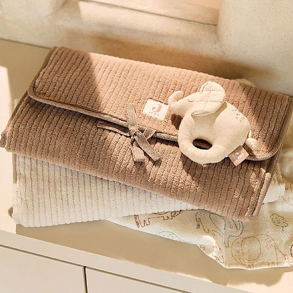Jollein verschoningsmat met opbergvakken Cloudy Rib Milky Coffee – effen lichtbruin/ecru