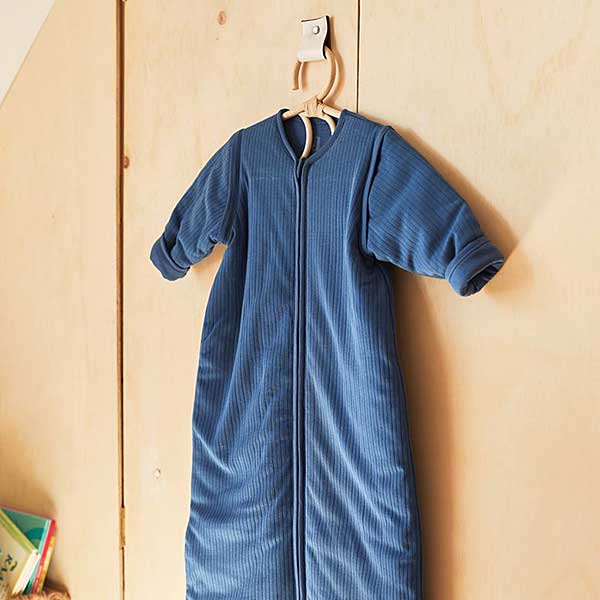 NIET Jollein winter slaapzak Basic Stripe Jeans Blue afritsbare mouw 90 cm – ribstructuur blauw