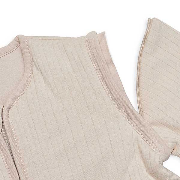 Jollein winter slaapzak Basic Stripe Nougat afritsbare mouw 110 cm – ribstructuur zand