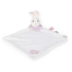 Superlief knuffeldoekje met grote roze oren en een schattig snoetje van Meiya & Alvin. In dit knuffeltje mag je bijten, knijpen en lekker mee knuffelen en spelen. Een ideaal knuffeldoekje ter ondersteuning bij doorkomende tandjes. Het konijntje zit vast aan een heerlijk zacht knuffeldoekje met flapjes waar lekker aan gefriemeld kan worden.