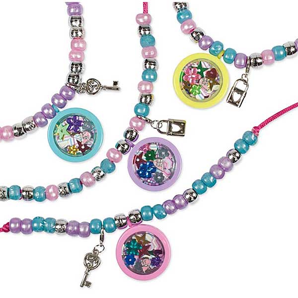Maak jouw eigen medaillons met deze set van Galt. Stop de medaillons vol met bloemetjes en pailletten. Rijg ze aan het zijdeachtig koord samen met de zilveren en gekleurde kralen. Leuk om zelf te doen of cadeau te geven.