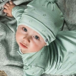 Dit leuke setje groene babymutsjes uit de Forest Green collectie van Jollein bestaat uit twee zachte mutsjes: één effen groen en één met een vrolijke print van grijze boompjes. Ideaal voor pasgeboren baby’s, die hun eigen temperatuur nog niet goed kunnen reguleren. Een mutsje helpt om het hoofdje warm te houden – vooral in de eerste weken is dat extra belangrijk.