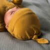 Baby knoopmuts Wild Animals Mustard – effen/tekst – okergeel/zwart – 2 stuks – Jollein