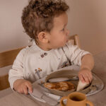 De zachte, LFGB-gecertificeerde siliconen handvatten zorgen voor een veilige en comfortabele grip. Het eetgedeelte is gemaakt van duurzaam roestvrijstaal, zodat het bestek lang meegaat en eenvoudig schoon te maken is. Perfect voor dagelijks gebruik en ideaal om kinderen op een speelse manier te laten leren eten.