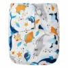 De wasbare pocketluier Sea Animals van HappyBear Diapers is bedrukt met een speelse onderwaterprint van walvissen, haaien en kleurrijke vissen. Deze verstelbare luier groeit mee met je kindje, vanaf de geboorte tot het moment van zindelijkheid. Een slimme en duurzame keuze voor ouders die comfort en milieuvriendelijkheid willen combineren.