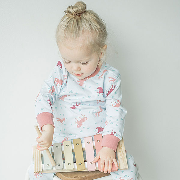 De Frogs and Dogs pyjama Horse is ontworpen met aandacht voor zachtheid, duurzaamheid en optimaal draagcomfort. De soepele stof voelt prettig aan op de huid en ademt goed waardoor de pyjama zowel ’s nachts als overdag comfortabel blijft. Dankzij de verbeterde kwaliteit behoudt de stof zijn vorm en kleur, zelfs na veelvuldig wassen. De lange mouwen en broekspijpen bieden extra warmte tijdens koudere nachten terwijl de stof licht en luchtig genoeg blijft om ook in de tussenseizoenen prettig te dragen. De elastische tailleband zorgt ervoor dat de broek zacht aansluit maar niet knelt zodat kinderen vrij kunnen bewegen en heerlijk kunnen slapen. Hierdoor is deze pyjama een fijne keuze voor kinderen die graag warm en comfortabel slapen.