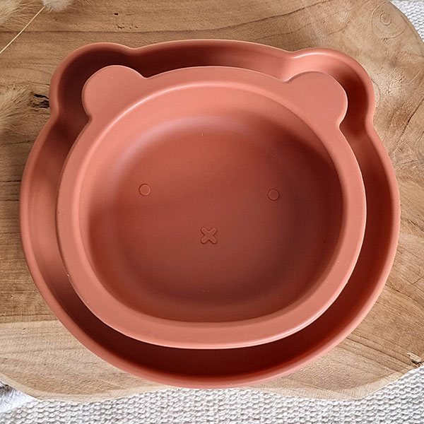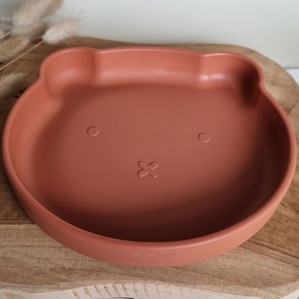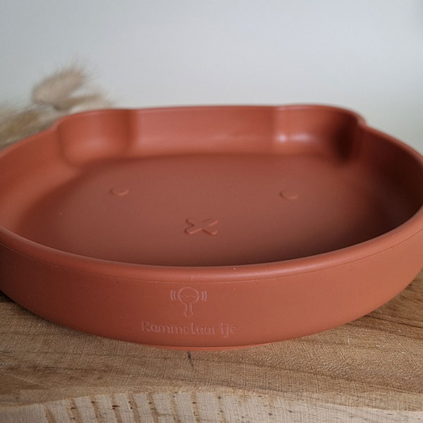 Rammelaartje bord siliconen Beer Roest – roodbruin 17 cm