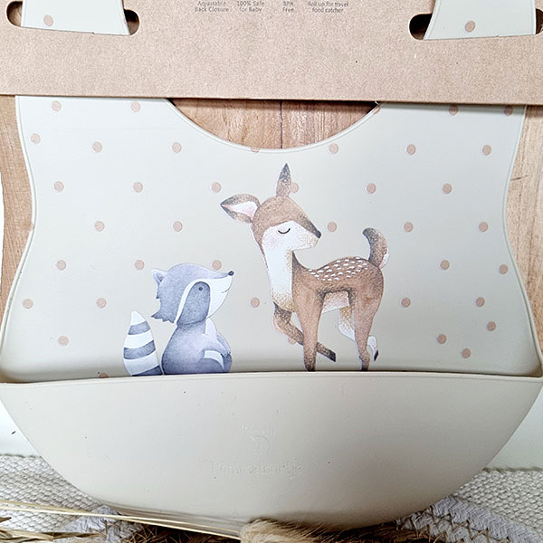 Rammelaartje siliconen slabber met opvangbakje Hert & Wasbeer – Beige 1 stuk