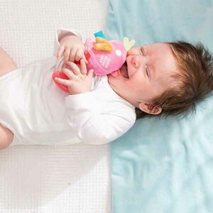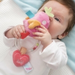 Bij elke beweging klinkt er een vrolijk rammelgeluid dat de zintuigen prikkelt en zorgt voor veel speelplezier. Het roze vogeltje is gemaakt van hoogwaardige materialen en voelt heerlijk zacht aan. Ideaal om mee te spelen in de box of om onderweg mee te nemen.