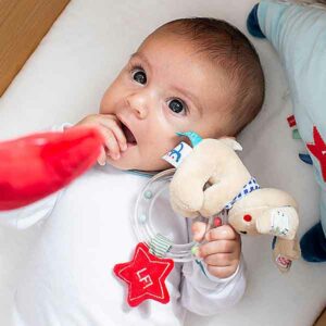 Wanneer je kindje de rammelaar beweegt, klinkt er een vrolijk geluidje dat de zintuigen prikkelt en uitnodigt tot spelen. De zachte, hoogwaardige materialen voelen prettig aan op de gevoelige babyhuid en maken dit speeltje ideaal voor gebruik in de box, kinderwagen of onderweg. Een lief en leerzaam cadeautje voor de allerkleinsten.