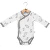 Dit overslagrompertje is veel meer dan alleen een romper voor onder de kleding van jouw baby. Draag hem eens als shirtje bij een broekje of rokje. Het overslagrompertje heeft een eigentijdse print van een pinguïn en is afgezet met een grijze bies.