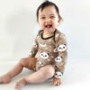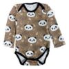🖤 Bruin rompertje met all-over print van pandaberenhoofdjes