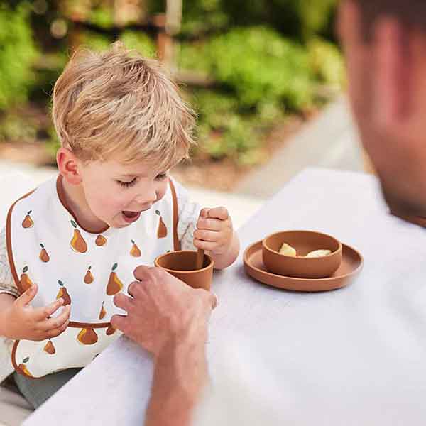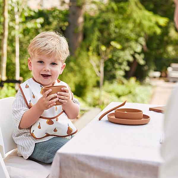 Met deze vrolijke waterproof slabben uit de Pear collectie van Jollein wordt elk eetmoment een stuk relaxter. De all over perenprint zorgt voor een frisse en speelse uitstraling. Dankzij het waterafstotende materiaal blijven kleertjes goed beschermd tegen knoeien. Het opvangbakje vangt etensrestjes netjes op. Ideaal voor baby’s en peuters die graag zelf ontdekken. Een praktische en stijlvolle set voor dagelijks gebruik.