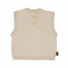 Langs de hals, onderkant en mouwgaten loopt een fijn gebreid rufflerandje dat zorgt voor een charmante en speelse touch. Aan de achterzijde heeft de spencer een praktische sluiting met drie knoopjes, waardoor aan- en uittrekken eenvoudig gaat. Het zachte en hoogwaardige materiaal voelt comfortabel aan en maakt deze spencer een stijlvolle toevoeging aan de garderobe van je baby. De spencer is perfect te combineren met een blouse of longsleeve en daardoor geschikt voor zowel dagelijks gebruik als bijzondere gelegenheden.