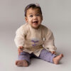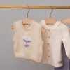 Deze prachtige baby spencer in de kleur beige komt uit de Simply Nice Girl collectie van Frogs and Dogs. De spencer is voorzien van een sierlijk geborduurde bloem in zachte tinten gebroken wit en paars, wat een romantische en elegante uitstraling geeft.